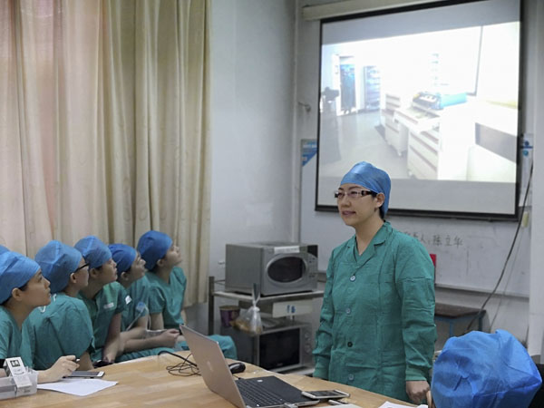 随着七点的到来,冯立护士长宣布开始。首先上场的是眼科组,裴素芝老师用形象的课件加上自己生动的演讲,从申请新器械、建立工作本、器械如何报废、过去和现在各个方面的对比以及存在的问题和解决方案等方面展开叙述,为大家开了一个好头。随后是骨科组,张重阳老师首先对骨科组过去这段时间针对外来器械管理、相关人员管理和手术体位的管理做了汇报,随后对未来的工作做了展望,顺便“邀请”大家进入骨科组,进行“招兵买马”,引来大家热烈掌声。轮到清洗组了,王兰荣老师虽然没有PPT ,但见她手里拿着一摞打印好的总结报告,再加上她幽默的演讲,迎来阵阵掌声,足见王老师对此次汇报的重视和做的准备之充足。表格组虽然成立短短一个月,但是褚颜青老师就交接单、核查单、记录单等的规范书写和过去、现在的对比做了详细汇报,引来大家啧啧称赞。总务组的王珅涛老师,虽然上班才一年多,但是课件的新颖、演讲的精彩,让大家久久回味无穷。院感组李兆远老师、腔镜组陈伟建老师等,都向大家做了详细而精彩的汇报。本来预计一个小时的汇报延长到了将近一个半小时,各个质控、专科组用积极、热情、生动的演讲汇报了自己组卓有成效的工作。汇报结束,冯立护士长做了总结发言,激励大家以此次汇报为契机,共同努力,改进现存的问题,共同促进手术室各方面的发展。