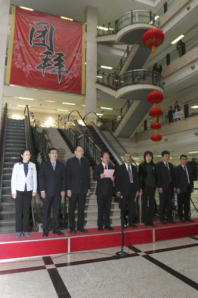 在本部门诊大厅举行了春节团拜会,向全院职工、学生、患者及家属拜年,全体在院领导参加。