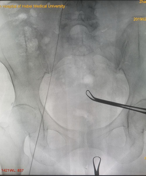 就诊,难以建立常规输液通路。乳腺中心回天立主管医生通过查阅大量文献资料并结合既往手术经验,与宋振川主任反复商讨后制定了股静脉港的置入方案。手术当日,在超声科纪晓惠主任、放射科杨光主任的协助下,成功将导管送达下腔静脉与右心房结合部,港座埋置于右下腹壁皮下,完成了我省首例股静脉穿刺静脉港置入术。术后第一天患者恢复顺利,下床活动良好,静脉通路顺畅。