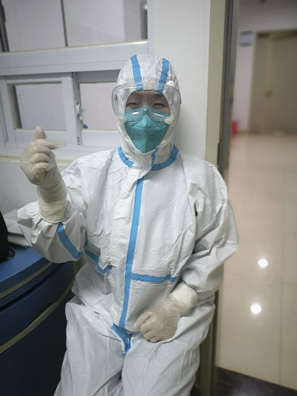 贾会利参加工作已经17年了,是一名优秀的胸外科护士。她于1月21日进入疫情防控一线,每天都认真仔细地做好每一项工作,问诊、测体温、登记、采血、护理、消毒……不管是工作上还是生活上,她都把困难留给自己。
