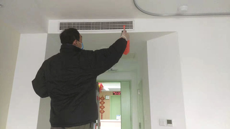 中央空调班与基建处积极配合,多次到现场勘察,摸清了医院现有空调及新风系统运行状况,针对当前的疫情防控需求联合制定了相关应急方案,并主动承担了进、出风口的消毒工作。