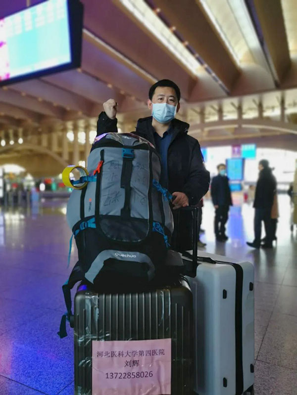 “现在终于有机会能为防控疫情出一份力了!作为一名逆行者,我无畏无惧,武汉,我来了!”迈着坚定有力的步伐,刘辉正式随队出发了。我们祝他一路顺风,攻克难关,平安回家!