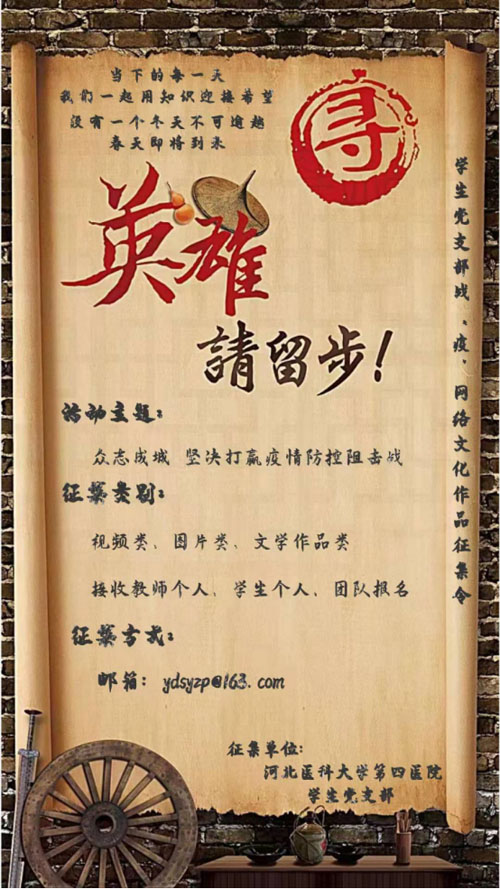 学生党支部以“众志成城,坚决打赢疫情防控阻击战”为主题,在教师和学生当中征集视频、文字、图片等抗击疫情的宣传作品,引导学生们在防控期间凝心聚力,冷静思考,传播正能量,弘扬医院文化。