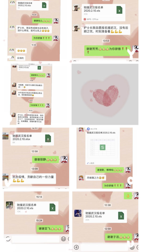 随着疫情形势愈发严峻,河北省卫健委要组建医疗团队前去驰援武汉。接到通知后,科室全体医护人员主动请缨,他们在请战书上庄严地签上了自己的名字并按下红手印,要求到一线去做贡献。按满红手印的请战书熠熠生辉,全科人员随时处于待命状态。