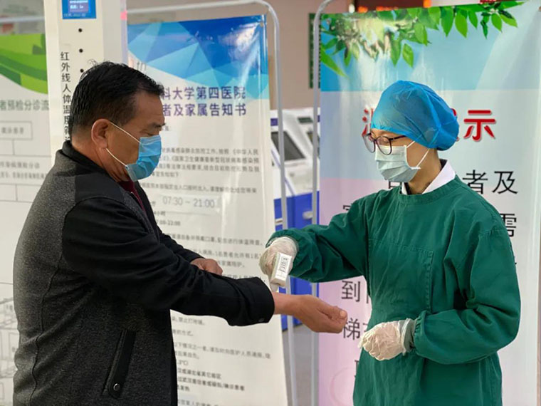 面对严峻的形势,护理教学办公室全体教师在第一时间递交请战书,最终,李志红主任、范晓丹副主任、吴景梅老师和李慧娟老师分批参加了医院体温监测工作,段红霞老师虽已年过五旬,仍多次申请参加。各位老师对进入医院急诊、门诊和病房的每个人测量体温,并询问其身体状况和近期相关流行病学问题,如发现发热患者和有流行病学史的人员,第一时间将其护送到发热门诊做进一步的诊疗。她们勇担使命,切实做到把好医院第一道关口。