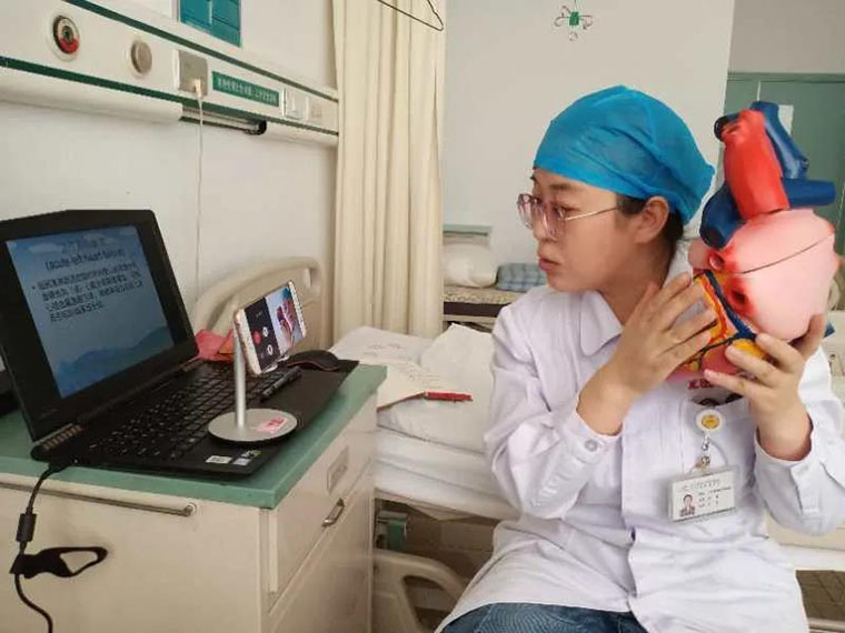 ICU护士长尹彦玲通过网络教学平台向护理三年级学生授课