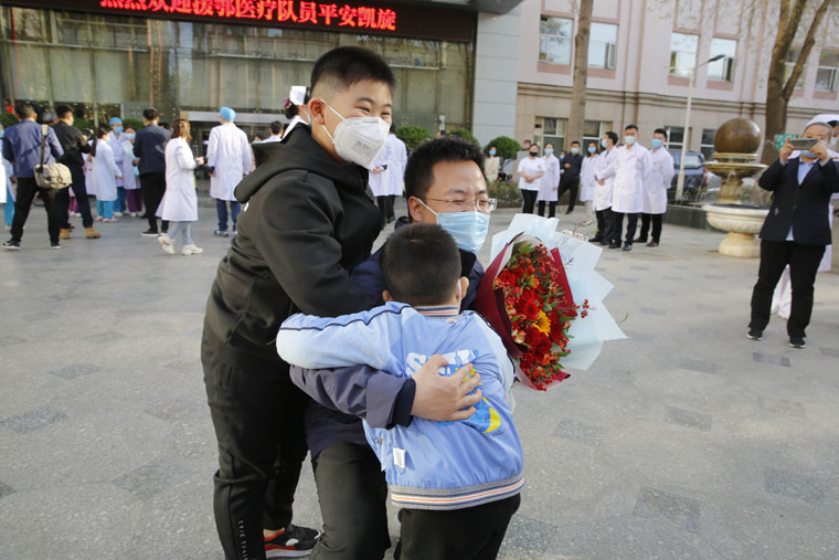 3月20日,朱桂军、杨大运、申康康、王亚美载誉返石。经过14天的隔离休养,今日,他们终于可以回家,和亲人团聚,并继续休养一周。一声声亲切地呼唤、一次次热烈地拥抱,是对战士凯旋的最好礼物。