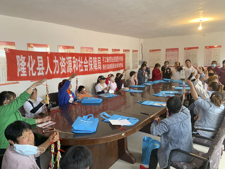 驻九屋营村工作队牵头和支持,河北省非物质文化遗产传播基地、国翠非物质文化遗产交流中心联合隆化县盛隆职业培训学校主导、隆化县人力资源和社会保障局大力支持的非遗扶贫(创业、就业)绳结技艺走进隆化县九屋营村,为当地百姓就业创业、脱贫致富打开了一扇新的大门。
