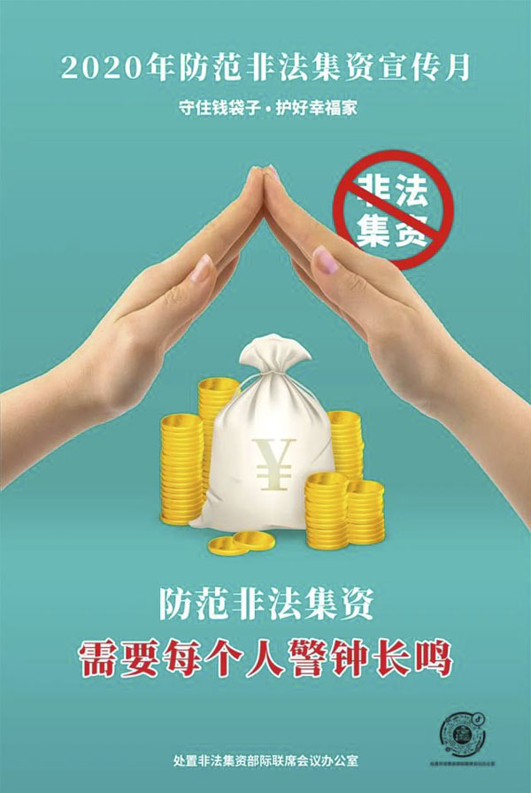 四、增强参与非法集资风险自担意识。非法集资是违法行为,参与者投入非法集资的资金及相关利益不受法律保护。因此,当一些单位或个人以高额投资回报兜售高息存款、股票、债券、基金和开发项目时,一定要认真识别,谨慎投资。