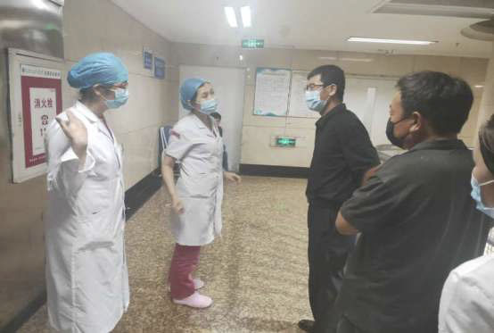 金云主任、王娟副主任向家属交代病人情况,让家属安心。