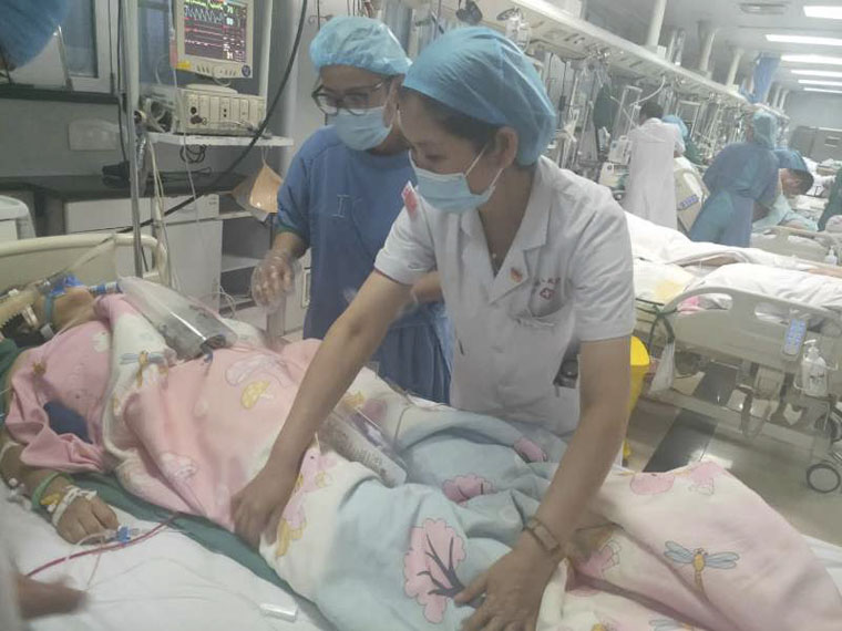 病人安全抵达巴州人民医院ICU,开始紧急的救治。