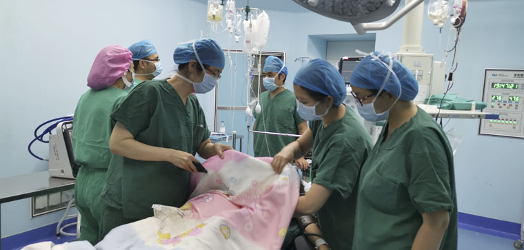 “把子宫还纳回腹腔,减少张力,阴道拉钩充分暴露视野……”王娟副主任指挥的同时,金云主任准备就绪,走上手术台止血。在大家的努力下,很快找到了宫颈的撕裂伤并成功止血。这时,麻醉师已经把患者体内的内环境调平衡,患者的各项生命体征有所好转。