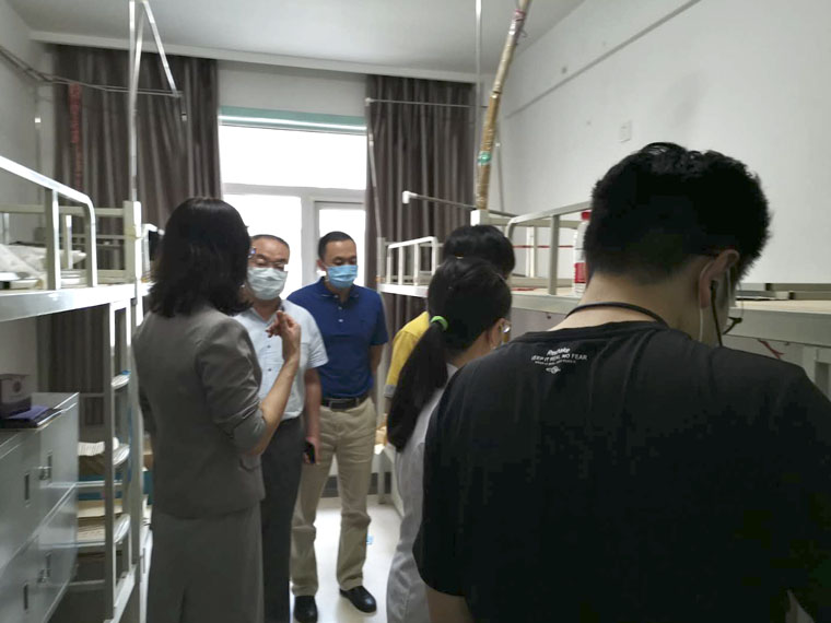 党委书记单保恩,党委副书记李晓玲带领党办、组织部等部门负责人到教学楼视察学生返校工作,并与在院学生进行交谈,送上临行前的殷殷嘱托及祝福。