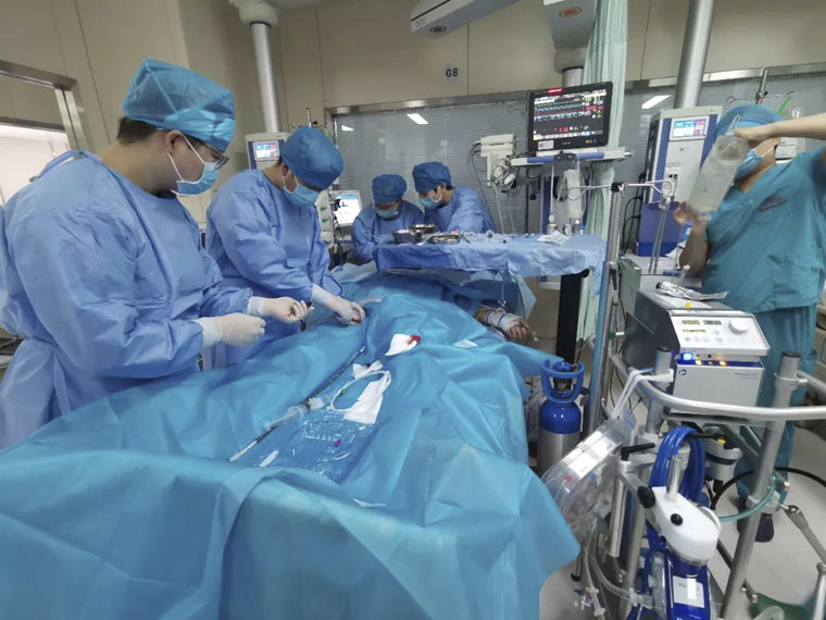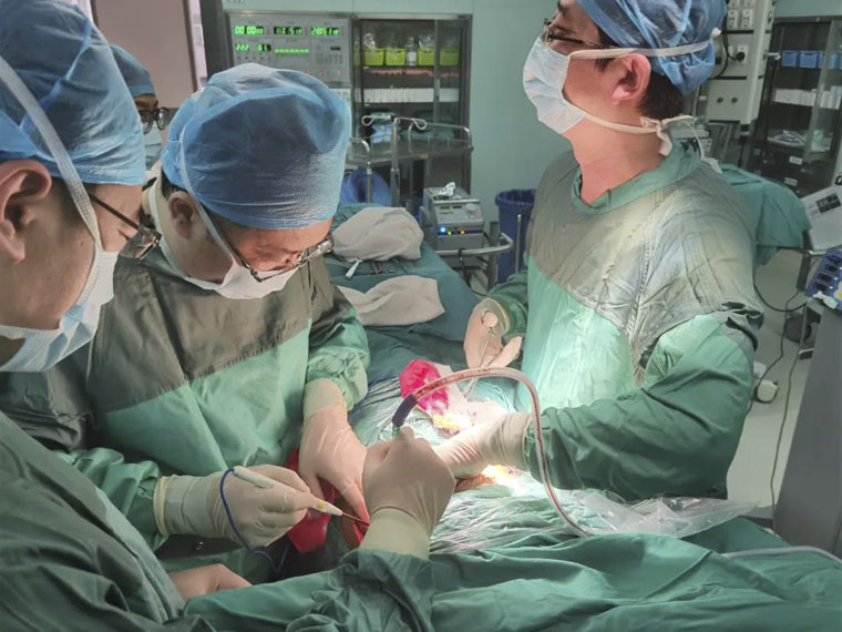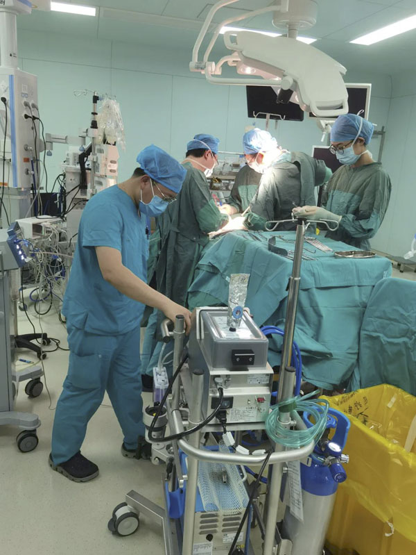 时至15:40点,医护陪同ECMO辅助下行开胸探查。胸外科高峰主任医师带领曾辉、石志华主治医师加班手术。果不其然,多处断裂的支气管已让患者的左下肺没有了存在的意义。切除、修补,在胸外科、手术室、麻醉科、ICU多科室的努力下3个多小时的手术顺利完成。胸腔闭式引流没有了气泡,患者的生命体征渐渐趋于平稳... ...