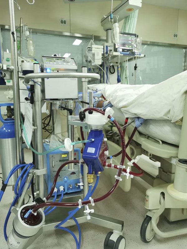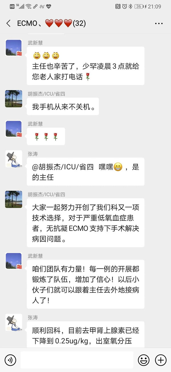 重症医学自2015年起坚持高标准、规范实施的原则开展了近20例ECMO,在胡振杰主任的带领下ECMO小组不断成长保卫患者生命使命必达!目前科室里两台ECMO同时在运转,其中一台已连续运转100多天,更换膜肺6次,目前患者神志清楚,生命体征平稳,ECMO条件亦在逐渐下调。ECMO,不断刷新着我们对生命和希望的认识。
