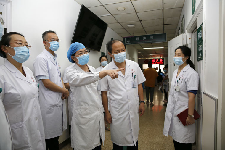 随后,单保恩书记一行来到东院发热门诊进行慰问。他详细询问了每天的接诊量和发热患者的来源,嘱咐大家注意做好个人防护,在工作中遇到困难,各部门将全力予以配合解决。单书记一行还到东院门诊静脉导管维护室、超声科等处实地查看。在近期开始运行的静脉导管维护室,他详细了解工作流程和有关制度,对维护室的工作给予充分肯定。他指出,静脉导管维护室的设置,在减轻病房工作压力的同时,满足了出院患者静脉导管的日常维护需求,是果冻传媒