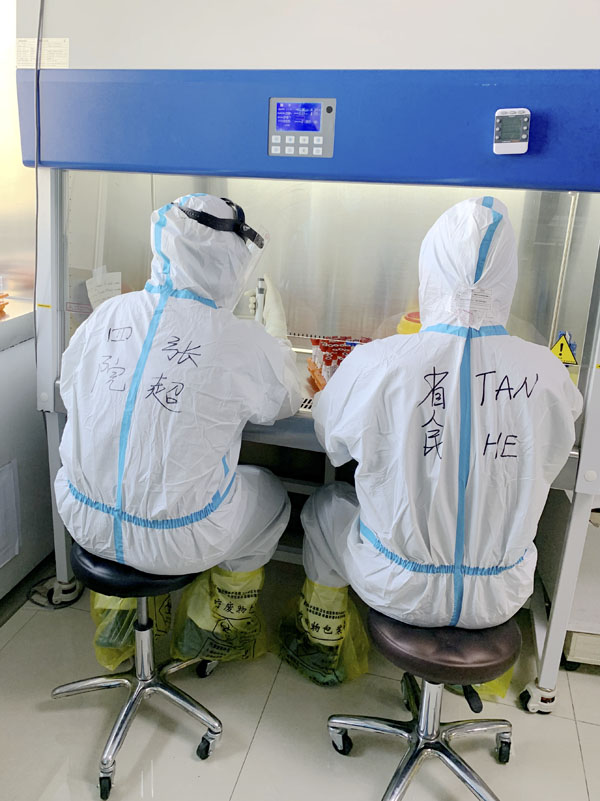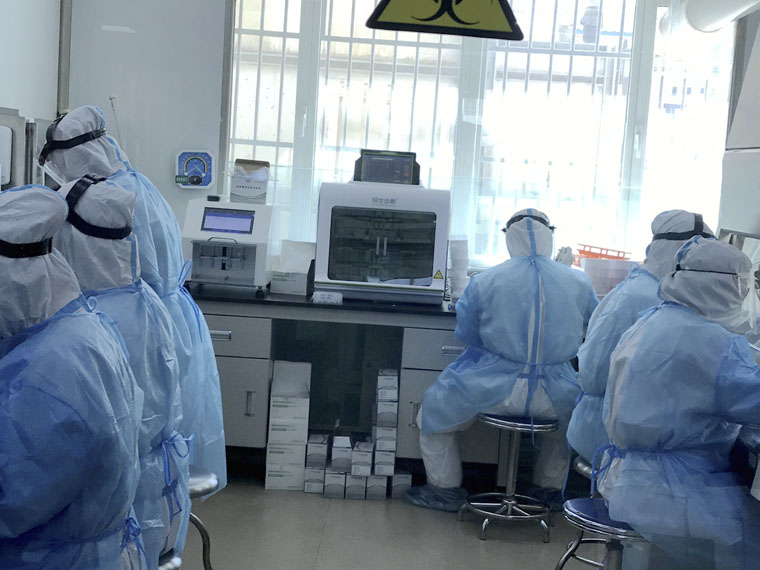由于检测任务及人员的变化,科里调整了工作安排,将所有人员合并为一组,每天晚上视情况工作到12点左右。我与河北医疗队的3位老师进入标本制备区、产物扩增和分析区,处理标本、加样、提取、扩增。