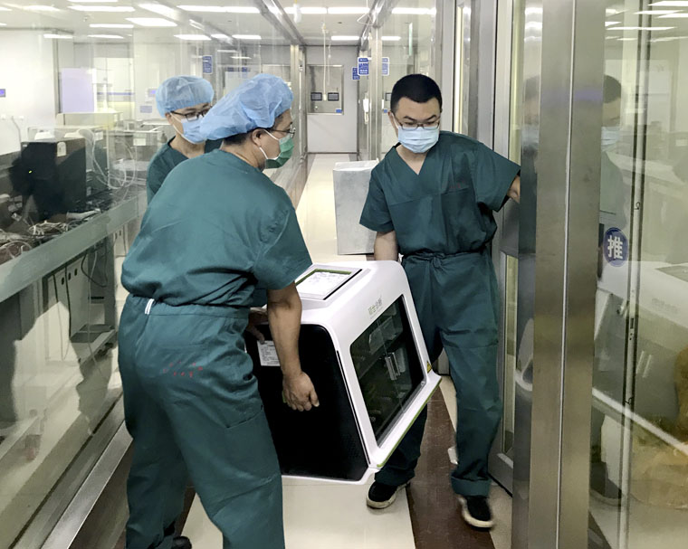 我和医大三院的冯彦蕊老师就如何最大限度利用现有人员和仪器提升核酸检测能力提出建议,尤其是建议将现在的6小时轮班制改为12小时轮班,同时进行班内轮岗、轮休,以保证检测人员的体力、精力始终处于最佳状态。我们当即将新到的仪器安装到位,并进行简单的培训。之后,我们河北医疗队进行了分组,有负责标本前处理的,有负责标本混样的,我与另一位老师负责加样,力争在各自岗位通过实践发现问题。