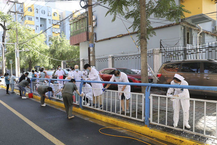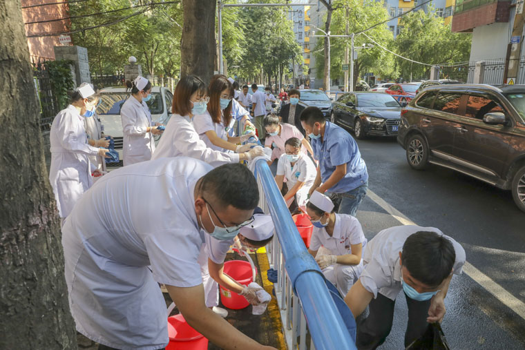 医院党委高度重视此次活动,学校党委常委、副校长、医院党委书记单保恩,党委副书记李晓玲现场指导,院本部各职工团支部积极响应,团干部带头,共有40多名青年志愿者参与。针对医院西门临近的栗康街非机动车摆放随意无序,道路施工及两侧树木树胶滴落造成的护栏脏粘状况,大家一齐动手,整理车辆、洗擦护栏,经过近两个小时热火朝天的劳动,医院西门周边环境焕然一新,车辆摆放整齐、护栏一尘不染、绿植生机盎然。