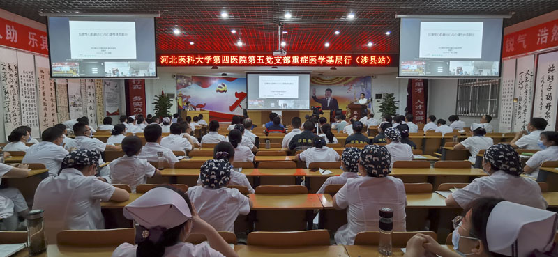 在涉县中医院进行的学术交流会上,支部书记胡振杰就应激性心肌病的发病机制及特点、诊断要点及治疗原则进行了深入浅出的讲解。支部党员朱桂军、霍焱、高鹏分别就ARDS、重症超声的应用、俯卧位的实施等题目进行了分享,当地多个医院的专家就工作中遇到的疑难病例进行了分享与讨论,讲座持续4个多小时,来自邯郸市中心医院、馆陶中医院、峰峰矿区总医院的多名专家和医护人员及涉县中医院组织全院20多个科室在线观看了学术讲座。涉县中医院的领导及专家表示,此次学术交流对于涉县中医院重症医学的发展有很大的启发,有助于提升涉县危重病人整体救治水平,为老百姓带来了福音。
