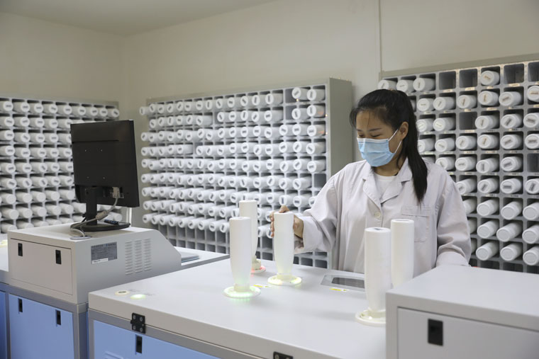 在智能中药房内,几排白色胶囊瓶紧凑地布满一面墙,如同蜂巢,近300味常用中药全部“变身”为中药配方浓缩颗粒,分装于筒状容器内。患者交费后,持就诊卡来窗口报道,药师将对医师的电子处方进行审核确认,合理处方被上传至该智能调配系统,系统将处方中的每位饮片自动折算成相应的颗粒剂量。点击自动调配后,墙上相应的胶囊瓶便有亮灯显示,取出亮灯的胶囊瓶,放置在配方机调剂位置,经过扫码二次确认后,机器便自动按处方剂量要求,将配方颗粒调剂并封装在塑料药袋里,调剂方式采用自动化数字控制,最大程度缩短患者的取药等候时间,同时也避免了中药调剂过程中出现的人为差错,进而减少了医患矛盾。