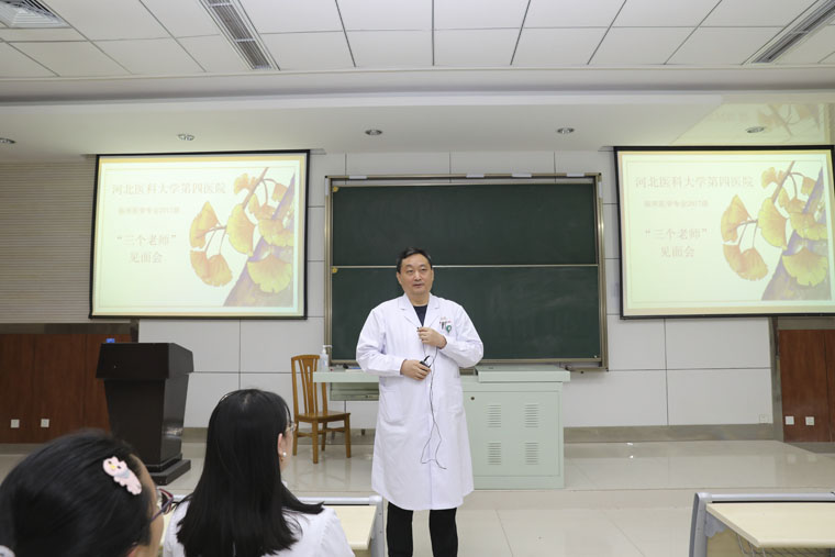 在综合楼6楼阶梯教室为临床医学专业2017级本科班召开“三个老师”见面会,学业导师徐金升教授,名誉班主任温转处长、田晓玲处长,教务处老师和全体同学共140人参加,本科班班主任史虹主持活动。