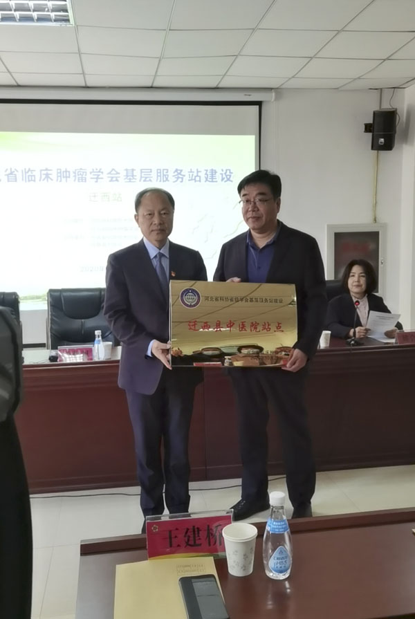 单保恩理事长为迁西县中医院授予“省级临床肿瘤学会基层服务站”牌匾,并指出,目前肿瘤防治面临着严峻挑战,加强肿瘤防控意识,提高恶性肿瘤诊治水平成为临床肿瘤工作者的重要任务之一。河北省临床肿瘤学会的主要任务是规范肿瘤临床诊治、提高肿瘤治愈率、降低死亡率,为健康河北做出应有的贡献。今年9月9日起,针对基层肿瘤诊治薄弱的特点,河北省临床肿瘤学会在河北省科协的指导和支持下,发挥平台优势,首次选择了全省10个边缘或贫困的县或区级医院为基层服务站,派肿瘤专家采取线上和线下形式进行科普宣传和查房,截至目前,已经在昌黎县、阜平县和南皮县举办活动,使基层医院受益匪浅。单保恩理事长表示,在当地政府和各级相关部门的支持帮助下,省临床肿瘤学会将组织更多的优秀专家广泛开展技术帮扶、基层巡讲、科普宣教、义诊咨询等活动,帮助基层医疗机构真正解决技术难题,提高基层医务人员的肿瘤诊治水平。
