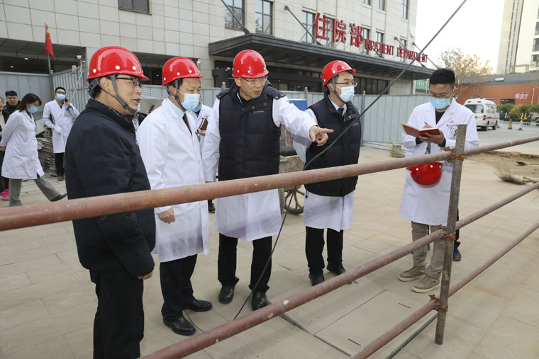 1218日,党委书记单保恩,副院长翟三江、何宏涛带领党办室、医务处、门诊部、院感科、基建处、设备处、后勤保障处、宣传部、保卫处等部门负责人到医院各在建项目工地政工查房,现场视察、调研、解决问题。
