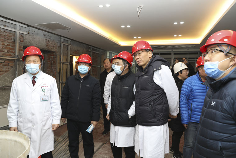 单书记一行先后视察了南楼装修工地、院内综合管廊改造工程、院区绿化提升项目、方舱CT选址预设地、大型医疗设备机房等地,就南楼搬迁、疫情防控、消防安全等方面的问题,向相关部门负责人详细询问、认真沟通,商量解决办法,尤其是对南楼病房楼的搬迁计划、病床家具购置、院感防控、保卫安全等方面进行了安排调度。单书记强调,各项目要加快推进建设进度,保证按时高质量完成,为患者提供更加优质的就医环境。