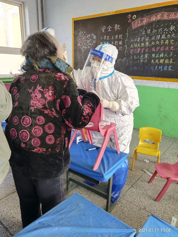 1月10日凌晨1点接到乡政府疫情防控组通知,当天需要配合乡政府对下属三个村子开展第二轮核酸采集工作。队员们总结了第一轮核酸采集工作的经验,发现登记并核对村民基本信息是非常重要的环节,首先确保准确,第二尽量高效,于是积极与村委会沟通,由当地熟悉民情的村委会成员负责登记并组织村民排队。采集队负责编码,村委会按照编码逐一登记身份信息并点名,队员采集时再次核对姓名,既保证了采集准确又避免了村民聚集,使得核酸采集工作井然有序、精准高效,未发生一例村民不配合的情况。队员们的采集工作得到了村干部的高度认可和赞许。1月11日,大家见证了多措并举下核酸采集工作的全面提升,信息化软件的开发和应用,部门间协调联动能力的增强,志愿者默默付出暖心相助,全体村民响应号召主动配合。每一个人的参与和努力都使得工作更加顺畅有序。