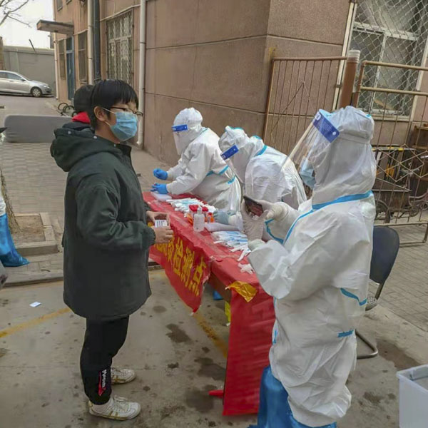 支援长安区各社区核酸采集队员在原81人的基础上进行调换和增补,组成105人的核酸采集队伍奔赴长安区3个街道办事处所辖的28个社区,共90多个采集点执行全市第二轮核酸采集任务,大家争分夺秒、全力攻坚,在短短2天内完成近11万人次的采集工作。