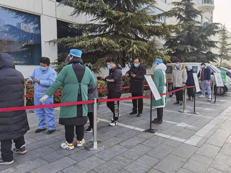 职工根据医院安排,从原来坚守14天延长至如今的1个月,每天冒着零下十几度的严寒,一站就是6、7个小时,测量体温、查验健康码、指导患者一米间距、流调登记、查看预约信息等,大家一丝不苟,认真完成每一项工作内容,仔细甄别可疑人员。住院患者入病区前还要进行二次审核,做检查时还要再次进行信息审核,层层把关。