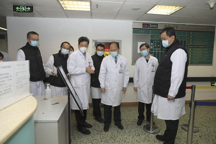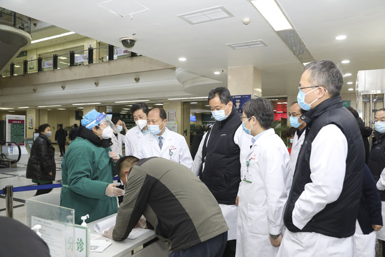 疫情防控工作,严防医院感染事件发生,1月28日,党委书记单保恩,院长徐金升,纪委书记李立平,副院长耿翠芝、刘运江、何宏涛、彭利,东院副院长张爱莉带领院办室、监察室、医务处、护理部、门诊部、院感科、后勤保障处、基建处、保卫处等部分负责人深入果冻传媒