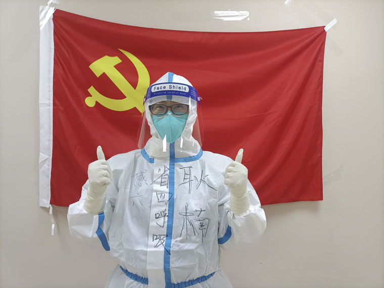 援助市人民医院抗疫医疗队临时党支部,由胡文霞担任支部书记。胡文霞同志号召大家迎难而上,不怕吃苦,认真工作,严密防护,圆满地完成支援工作,坚决打赢疫情防控歼灭战。7名队员中,有5名同志都是党员,大家积极响应,纷纷表态,都要以更高的标准要求自己,不忘初心,牢记使命,与疫情抗争到底。尚颖和张华两位同志也郑重地向党组织递交了入党申请书,表示要以共产党员的标准严格要求自己,坚决完成任务,疫情不退人不退。