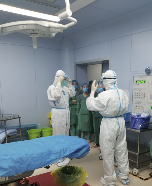 1月13日,当东院区接诊第一例待除外新冠患者的急诊手术时,护士们纷纷自告奋勇,积极请战,整个团队以“实”字当头,以“干”字为先,及时发现问题并解决问题。术后进一步优化流程、夯实细节,缩短了紧急手术前的准备时长,为医务人员防护和患者抢救赢得宝贵时间。在接诊第二例待除外新冠患者的急诊手术时,他们严格执行医院和科室针对缓冲手术间的管理要求,充分发挥了院感防控监督的作用,得到了外科医生的一致好评。