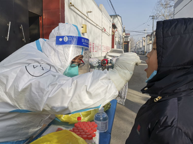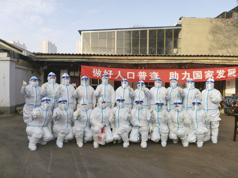 采集时,每两位队员结合成一个小组,互相帮助检查防护是否到位。对于新队员,老成员更是仔细检查,保证安全,避免感染。队员们连续3天每天站着采集样本8小时以上,结束工作时很多人出现左侧腰背肌疼痛。因为气温低,虽然队员们身上贴了暖宝宝,可一天下来也已经凉透了。大家的手脚都冻僵了,但每个人脸上都洋溢着笑容。一句“正好晒晒日光浴”驱散了所有的疲惫。
