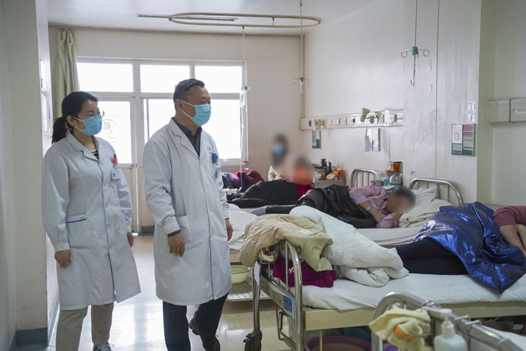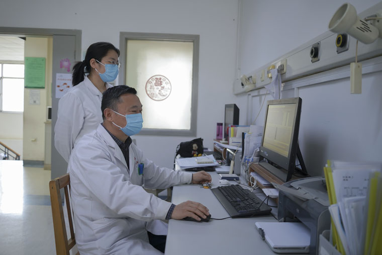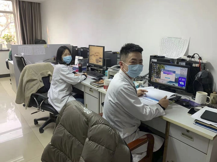 大年初一,妇瘤科牛书怀、刘青进行查房和其他工作。刘青说,这是我第一次在大年初一坚守岗位,非常光荣,一定把医学的接力棒接稳,跑好。