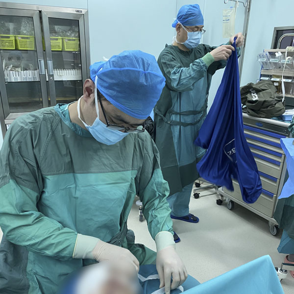 大年初一,眼科管永清和张希奎协力为青光眼发作病人进行急诊手术。