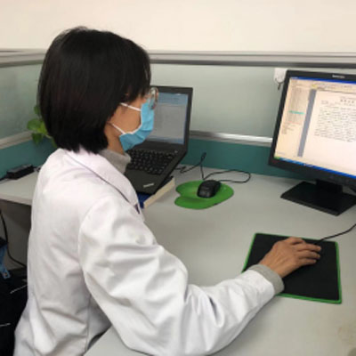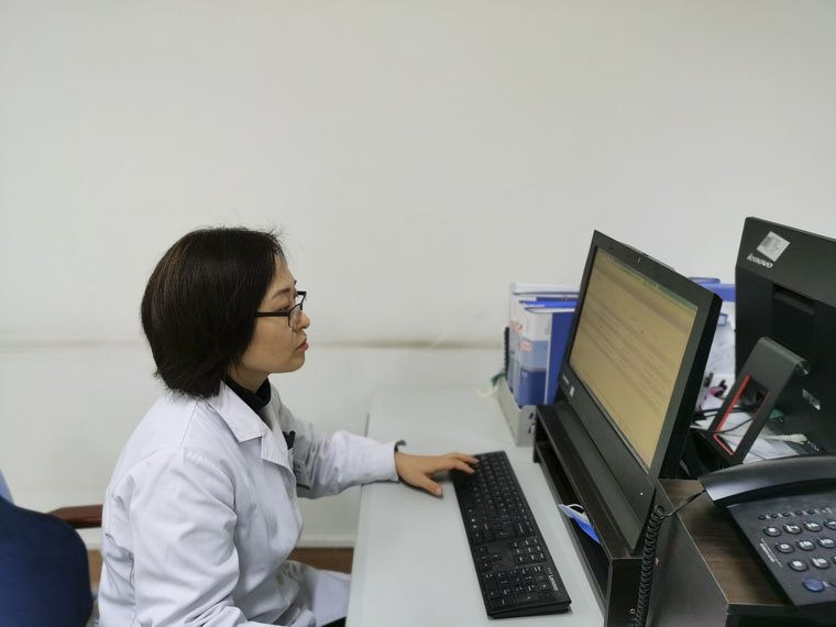大年初二,药学部白靖在岗位上时刻监护患者血药浓度。