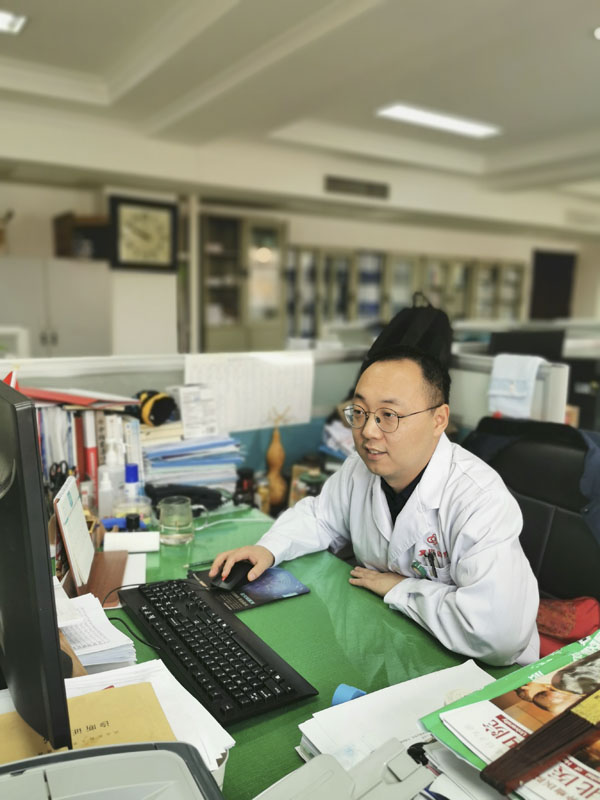 大年初一,医务处邢鹏辉正在处理多项工作。