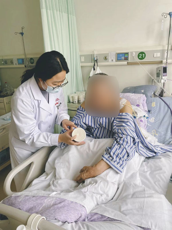 营养科张凡进行营养查房并向患者讲解营养制剂的使用方法。