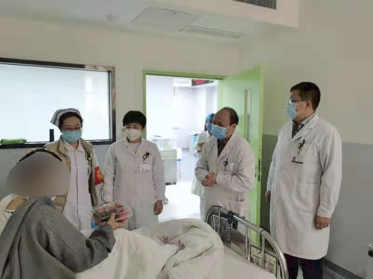 大年三十,肿瘤内科姜达、左静、王玉栋代表科室全体人员看望慰问留在科室的患者及家属,为大家送去祝福和新春礼物。