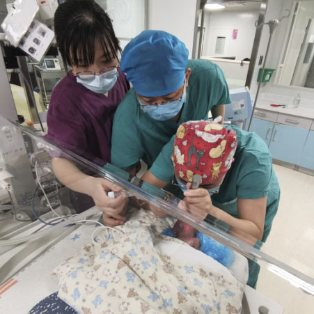 由于新生儿早产,18点,东院麻醉科刘燕、吴昆及儿科总住院合作为孕25周的新生儿行气管插管。