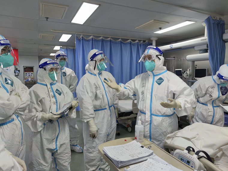 胡振杰待患者的病情严肃认真,对待一线的战友们和蔼可亲,是队员们心里的“大家长”和“压舱石”。经过30多天的连续奋战,时至除夕,胡振杰为了给大家加油鼓气,在援助胸科医院医护微信群播放了一首《生活不止眼前的苟且》,活跃工作气氛的同时再度激发了队员们的作战斗志。“有胡主任在,我们信心百倍”,几位战友表示,跟在胡振杰身边虽然仅短短一个月,但“吃透”了很多知识点。
