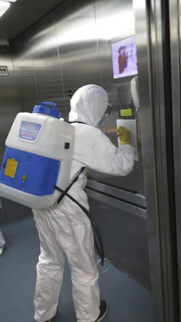后勤保障处对本部和东院区所有区域开展全方位、规范化、无死角消杀工作,对公共区域及病房的消毒频次由每日两次增加至四次,重点针对门把手、电梯按钮、水龙头、垃圾桶等人体频繁接触的部位进行彻底消毒。安排专人负责并建立工作台账,如实记录,严格落实消毒规范。对医疗垃圾回收增加回收频次,减少医疗垃圾堆放时间,医疗垃圾暂存点由每日消毒两次增加至五次,并用紫外线灯消毒两次。