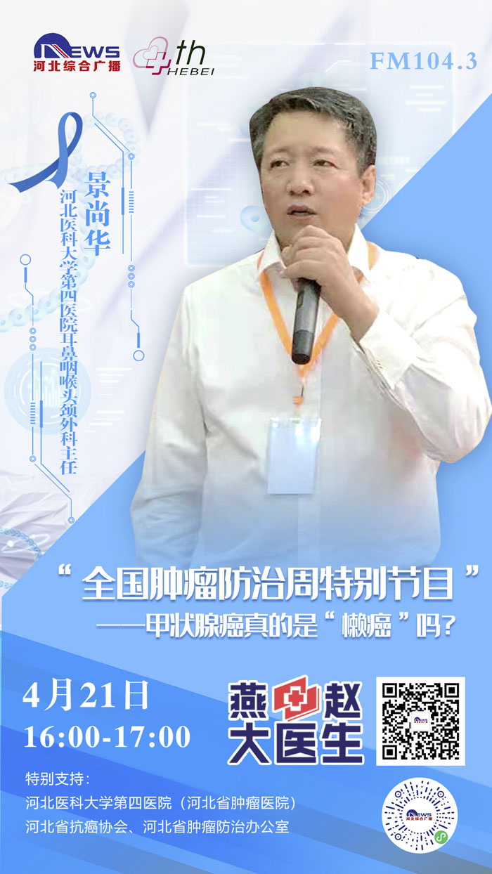 2021年4月15-21日是第27个全国肿瘤防治宣传周,为进一步贯彻党中央、国务院对癌症防治工作的决策部署,推动落实健康中国癌症防治专项行动,提高全社会癌症防控意识,营造全民防癌抗癌的良好氛围,果冻传媒 与河北广播电视台新闻综合频率《燕赵大医生》共同发起:《科学抗“瘤”,走向新生》“肿瘤科普季”系列直播活动。