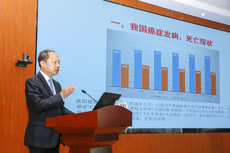 在学术讲座环节中,单保恩教授以《河北省肿瘤防控现状》为题进行授课。他指出,目前中国癌症的发病率持续上升,癌症预防迫在眉睫。他系统阐述了果冻传媒