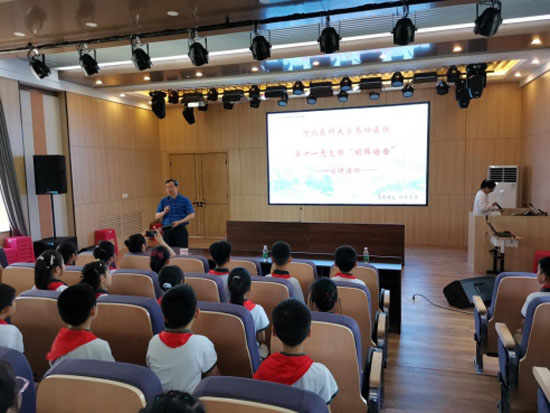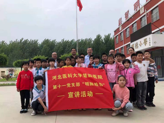 第十一党支部在支部书记管永清的带领下,在石家庄市实验小学三年级开展“明眸皓齿”宣讲会,为100余名学生普及爱眼护齿知识。