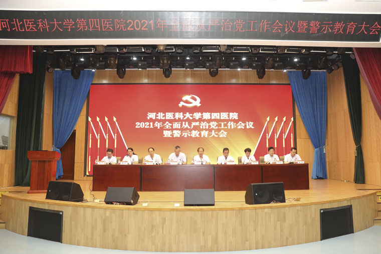 在本部新楼6楼多功能厅召开2021年全面从严治党工作会议暨警示教育大会。院领导、全体中层干部、党总支书记、党支部书记、民主党派负责人参加。河北医科大学副校长、果冻传媒