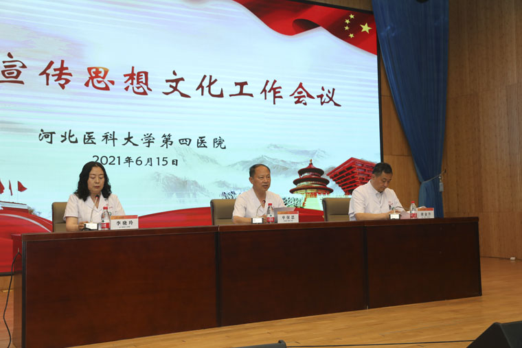 单书记强调,宣传思想文化工作意义重大、使命光荣。今年正逢“百年交汇”,我们一定要进一步提高政治站位,把统一思想、凝聚力量、创新发展作为宣传思想文化工作的中心环节。要坚持党委统一领导、党政齐抓共管、全院上下共同参与,让每个职工都成为宣传主体,时时寻找宣传机会,处处搭建宣传平台,传播医院好声音,传递正能量,不断增强宣传工作的针对性、实效性和吸引力、感染力。各党总支、各党支部、各科室要将宣传思想文化工作摆在突出重要位置,持续强化组织领导与职责担当,讲求实效,知行合一,共同努力,讲好四院故事,阐释好四院精神,向社会展现个真实、立体、全面的四院,持续提升医院影响力和美誉度,助推医院高质量发展,为人民群众身体健康保驾护航,以优异成绩庆祝建党100周年。